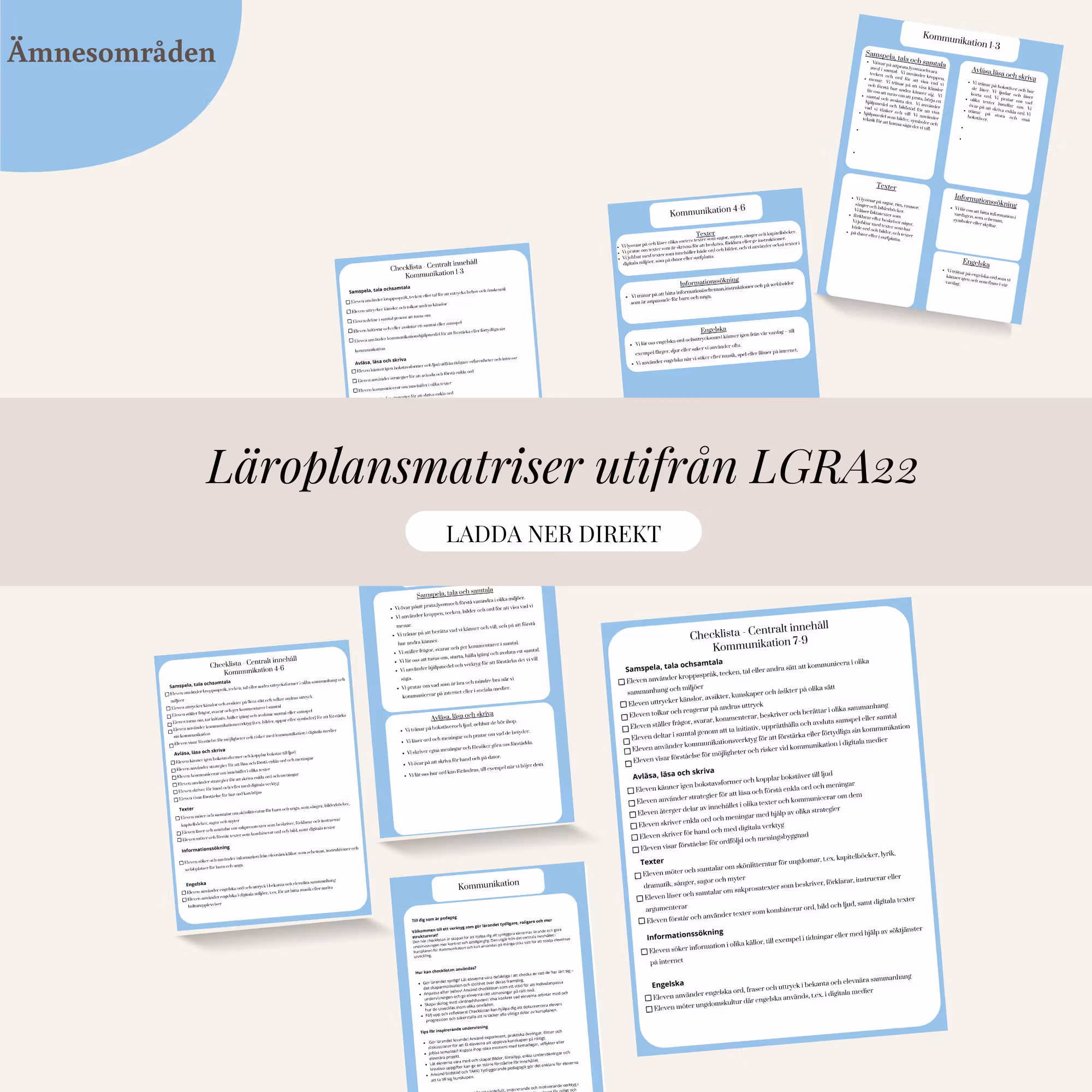 Tydlig matris kopplad till centrala innehållet i ämnesområden (Lgra22)